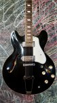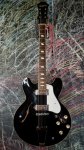 One of the most unique offerings Epiphone made to the world of guitar, the Casino carved out it's place in music history with quality and a delightfully rowdy sound. Loaded with P-90s and a fully hollow maple body, this guitar has a tight midrange well suited for rock, blues, or jazz! The sublime playing experience is made even easier with an especially thin neck and flatter fingerboard radius, allowing you to be very comfortable while rocking out! The guitar is sleek and well worn, with a clear 24 years of light playing delicately aging this ebony finished guitar, polishing it like a gem into one hell-of-a guitar!